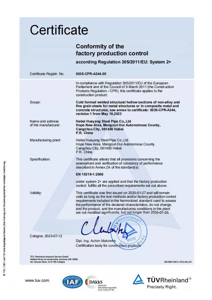 河北華洋鋼管有限公司公司創建于2005年,注冊資金5億元,公司占地面積1000余畝,固定資產12億元,年銷售收入近100億元,現有員工600余人。“華洋牌"高頻直焊鋼管被評為“河北省名牌產品”,年生產能力可達260萬噸,2024年河北華洋鋼管有限公司榮獲河北省百強民營企業(69位),河北省百強制造業(57位)榮譽稱號。